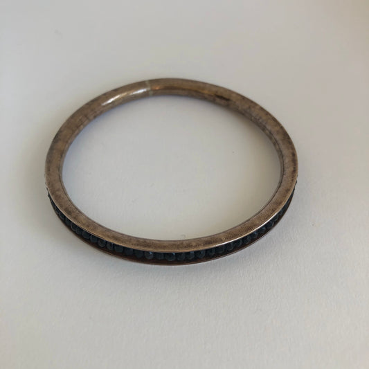 Bronze Bangle Bracelet with obsidian