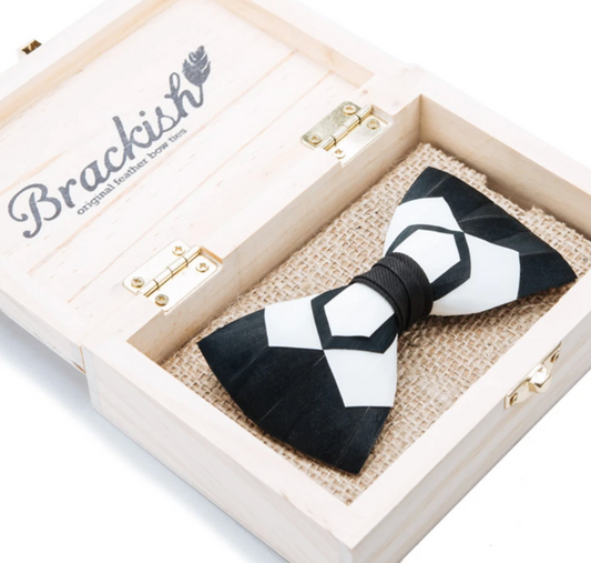 Handcrafted in the low country of South Carolina, Brackish Bowties are created with sustainably sourced feathers, painstakingly assembled in small batches.