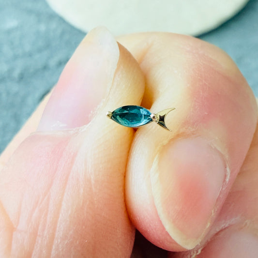 Tiny Tourmaline Fish Flatback Gold Studs