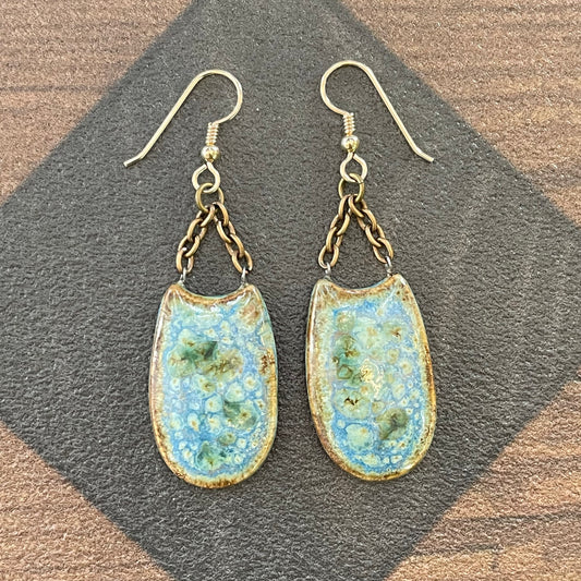 With a mixture of ceramic, leather and chains, the attention to each piece demonstrates the artists deep connection to the process. Her hand mixed glazes are otherworldly and the combination of leather and chains brings a grounding element to this line.