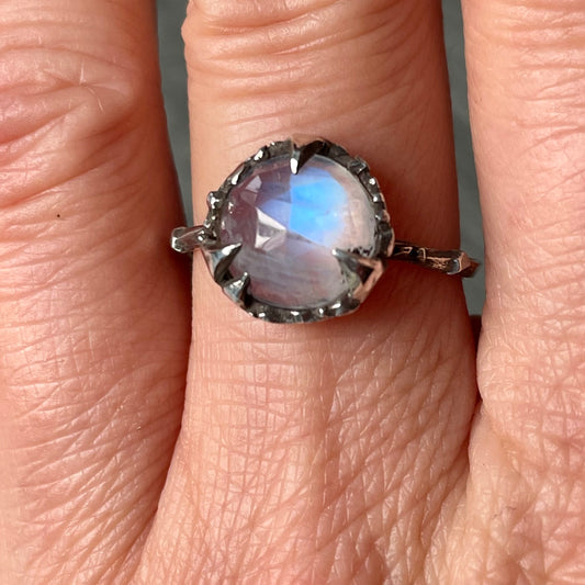 Mystical Solitaire Sterling and Rosecut Moonstone Ring