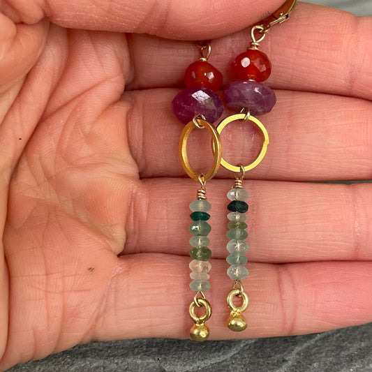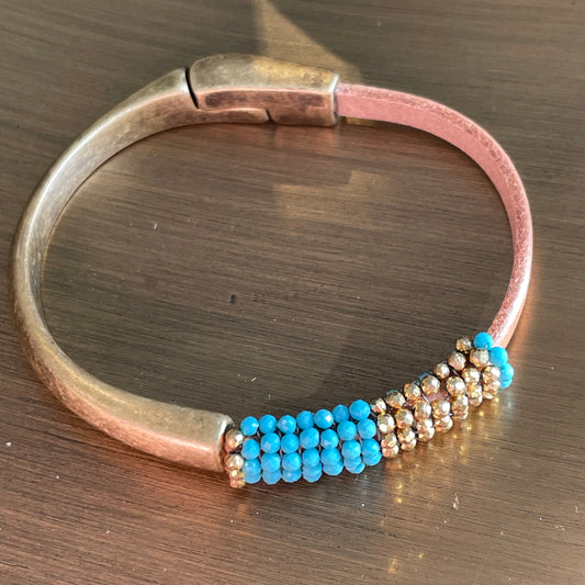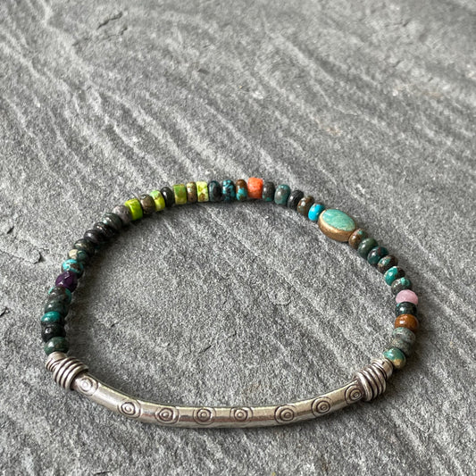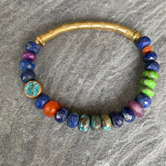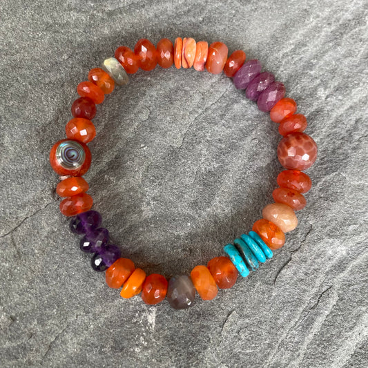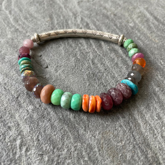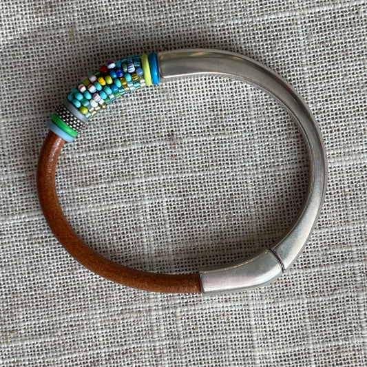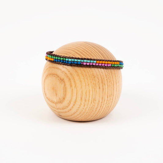Layered Stripes Bead & Leather Bracelet: Deep Pop