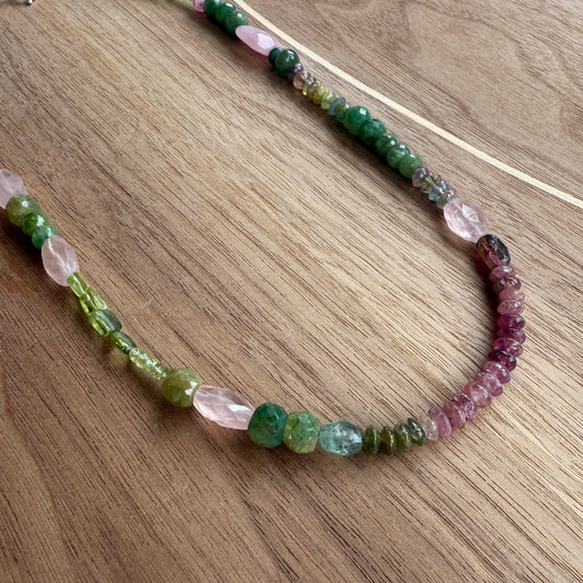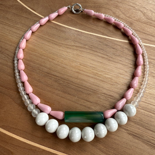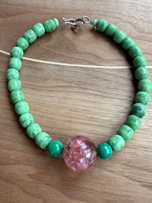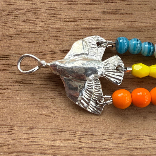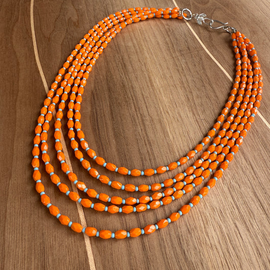 5 Strand German Tangerine & Turquoise Glass Bead Necklace