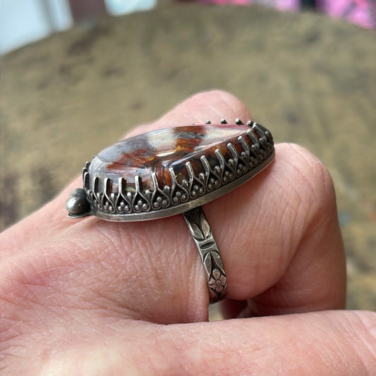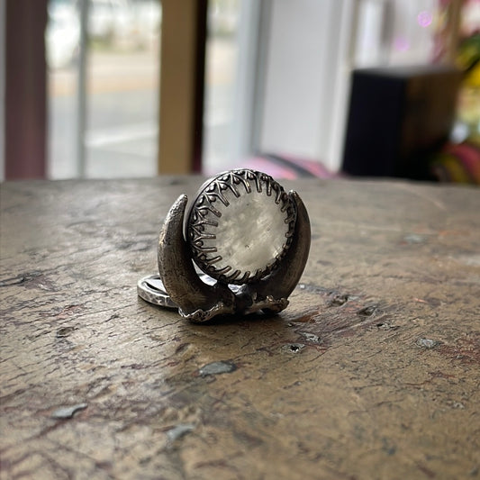 Coyote Claw Ring with Jumbo Rainbow Moonstone