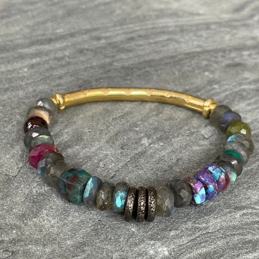 Labradorite and Chrysocolla Cube Beaded Bracelet