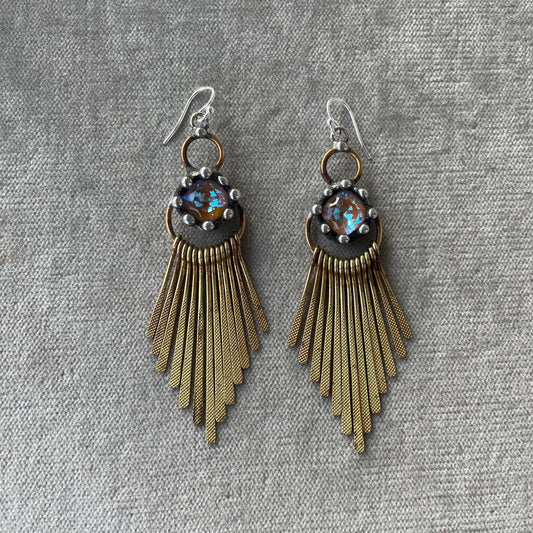 Ochre Crystal and Paddle Fringe Earrings