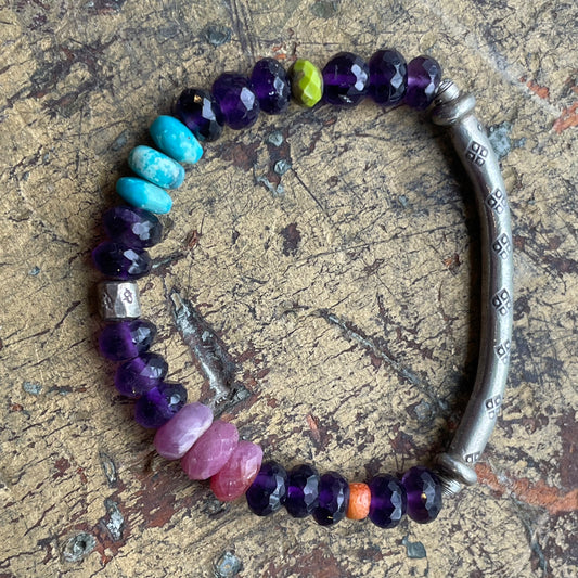 Amethyst with Thai Silver Bar Bravelet