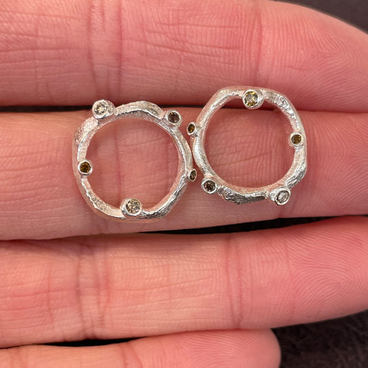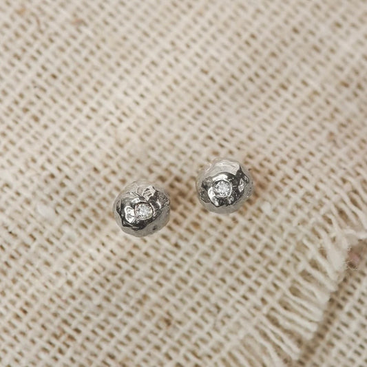 Sterling Pebble Studs with Diamonds