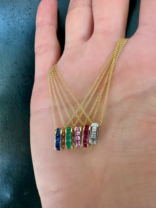 Mini Small Legend Pink Sapphire Baguette Link Necklace
