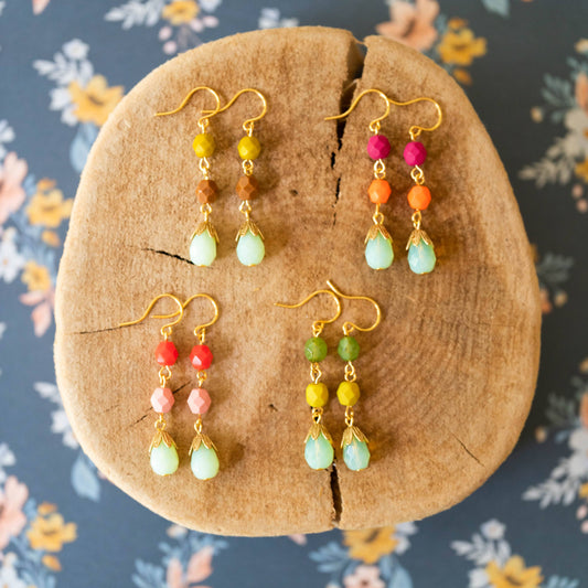 Czech Glass Triple Drop Earrings