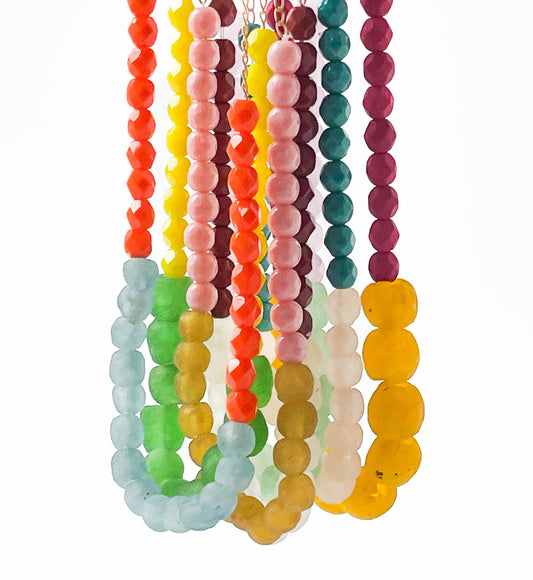 Multicolor Recycled African and Czech Glass Bead Bracelet