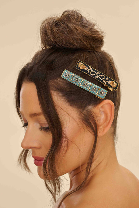 Jewelled Hair Clips (Set of 2) - Tile and Wheat, Sage & Teal