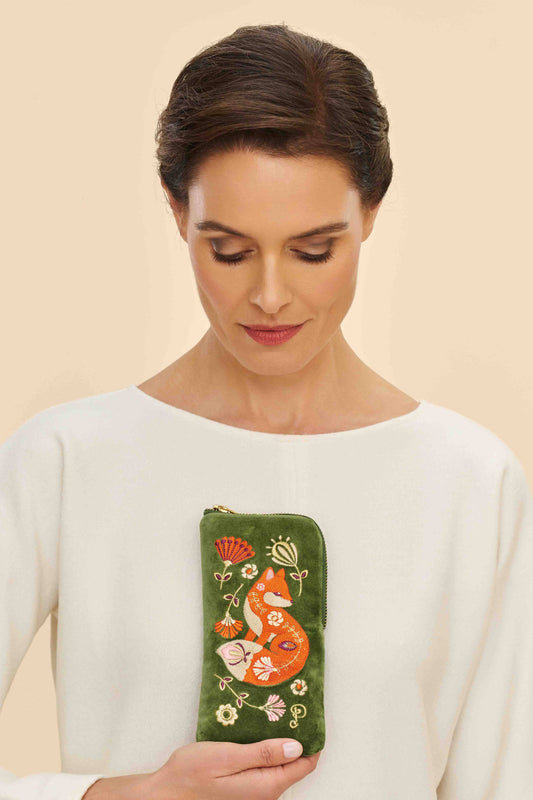 Velvet Embroidered Glasses Pouch - Scandinavian Fox
