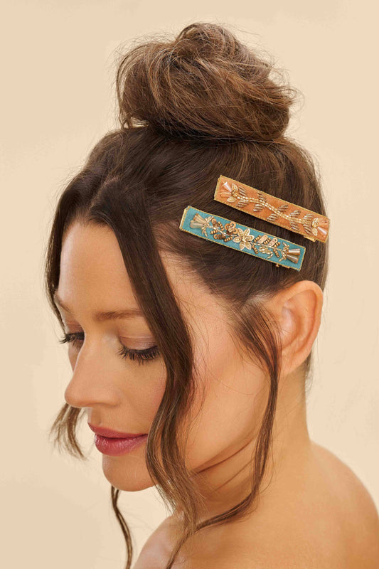 Jewelled Hair Clips (Set of 2) Fern/Tile, Teal/Vanilla