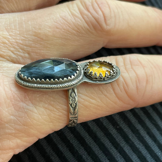 Pietersite and Citrine Statement Ring