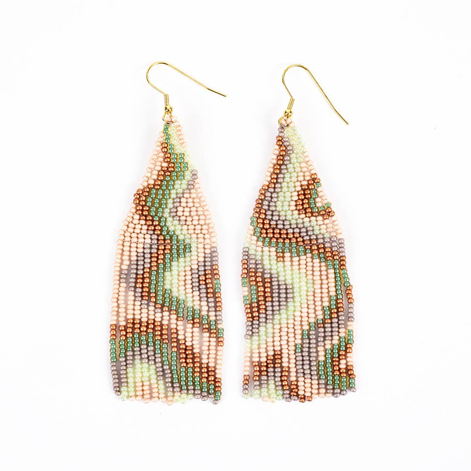 A groovy addition to any outfit, this intricately designed pair give a truly fluid 60's vibe. Secured with a gold plated brass ear wire. Height 4 inches by 1.25 inches wide. The Psychedelic Fringe Earrings are handmade in a fair trade workshop in Guatemala. These neutral but fun earrings are perfect to add to your every day outfits for a little spice.